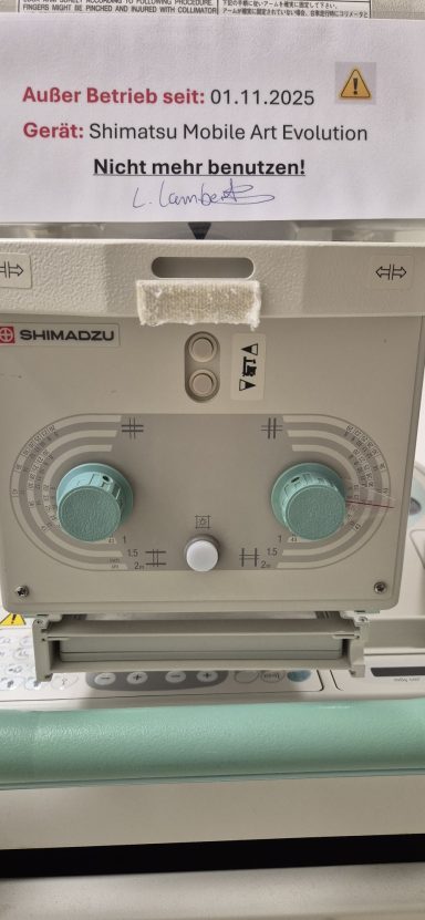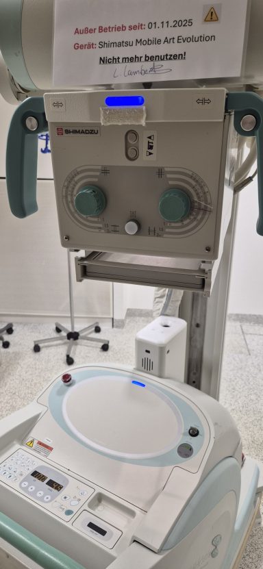 - System passed the Konstanzprüfung (DIN 6868-13) in July 2025, confirming stable image quality and proper radiation output.